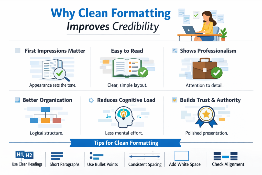 In today’s digital world, people read fast. They scroll quickly. They decide in seconds whether they will trust your content or not. Before they even read your full message, they look at the design and structure. This is why clean formatting is not just about beauty. It is about credibility.