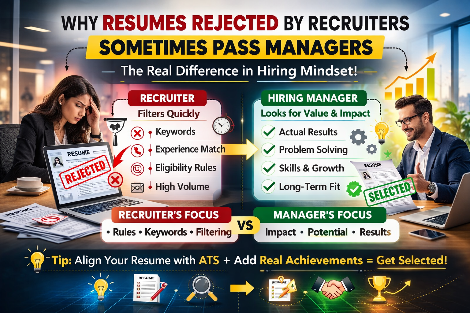 That is why sometimes it happens that a candidate rejected by a recruiter may actually impress the hiring manager. The hiring manager may find that same resume strong and consider the candidate eligible based on skills and potential.